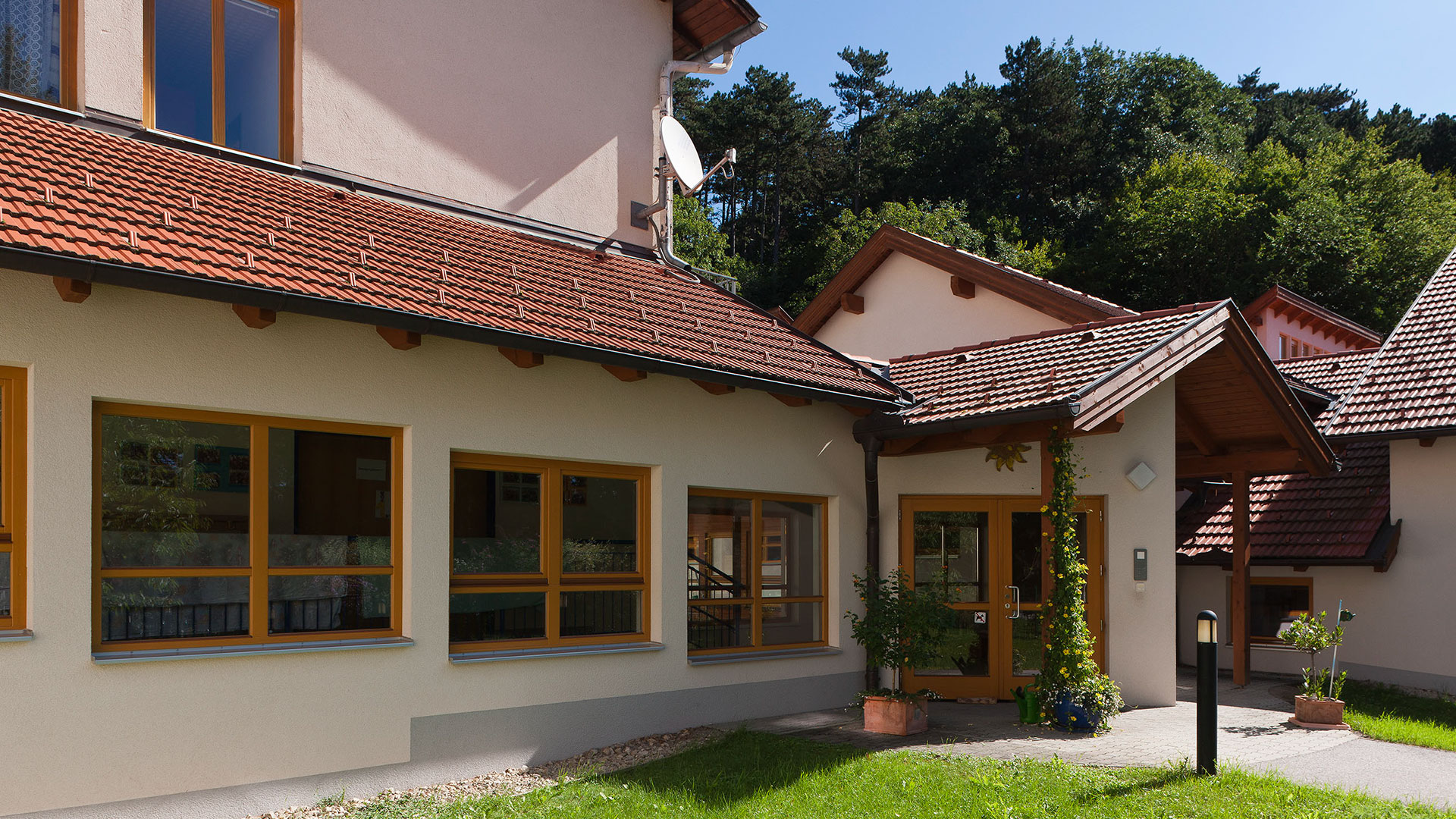 Der bestehende Kindergarten wurde durch einen großzügigen Zubau zu einem 4-Gruppen-Kindergarten mit 2 Bewegungsräumen, Küche, Multifunktionsraum und weitläufigem Garten ausgebaut.